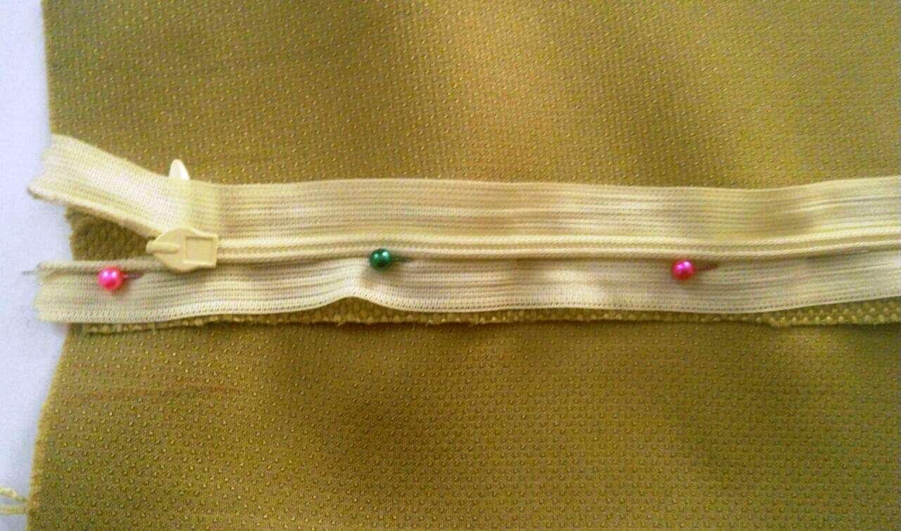 3. زیپ رو در محل دلخواه قرار بده و با سنجاق قفلی محکم نگه دار.