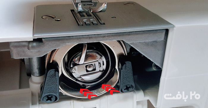 قسمت دوم و خيلي حساسي كه بايد روغن بخوره فاصله بين قاب ماكو و حفره اي هست كه قاب ماكو داخلش مي چرخه، فقط يك قطره روغن بين اين دو قطعه ميزنيم و چند دور دستگاه رو با دست حركت ميديم. دقت كنيد روغن رو به ماكو يا ماسوره نزنيد باعث ايجاد چسبندگي بين ماكو و ماسوره ميشه كيفيت دوختتون رو پايين .مياره، و نخ رو چرب ميكنه و كاري كه داريد ميدوزيد رو لك ميكنه