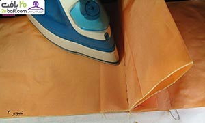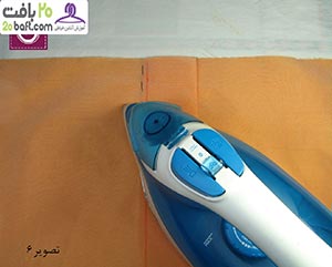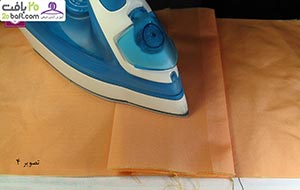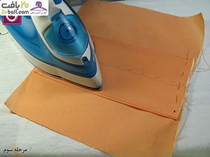 دومین مرحله: ابتدا درزها را اتو کشیده و سپس پارچه را باز می کنید. حالا درزها را روی هم گذاشته و فشار داده و بعد اتو می زنید.